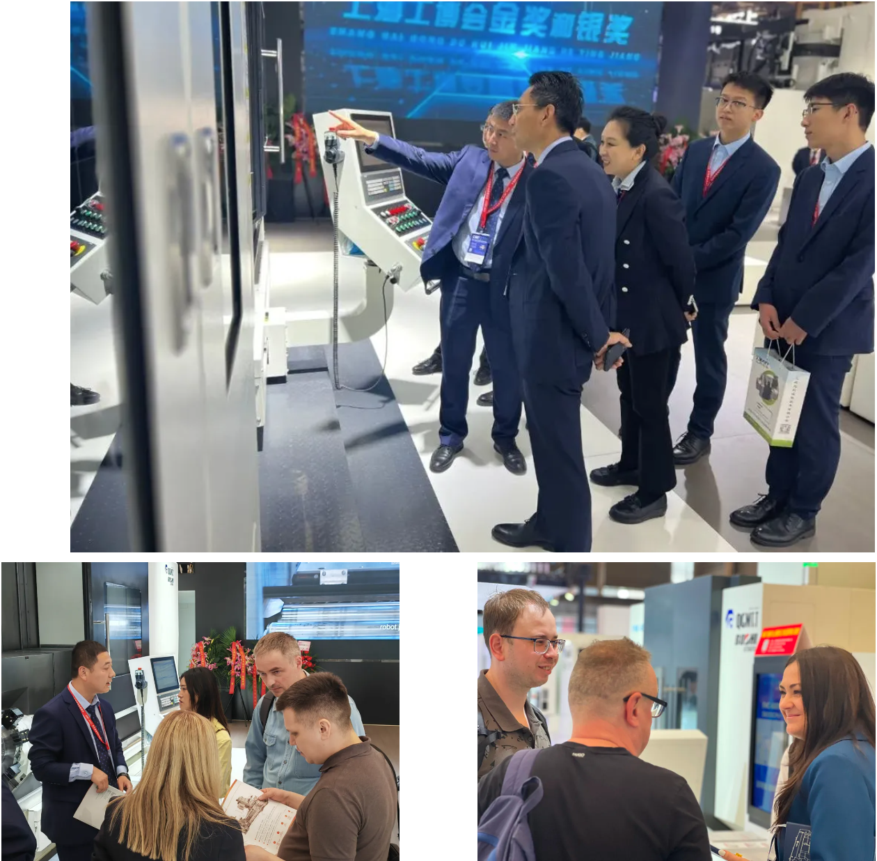 寶雞市政協(xié)主席劉其智、副主席張德科、明濤等領(lǐng)導(dǎo)蒞臨公司展位。秦川集團(tuán)李強(qiáng)總裁、寶雞機(jī)床集團(tuán)李清耀董事長(zhǎng)重點(diǎn)介紹了現(xiàn)場(chǎng)展機(jī)以及公司在科技創(chuàng)新、產(chǎn)品研發(fā)、重點(diǎn)領(lǐng)域應(yīng)用案例等方面情況。